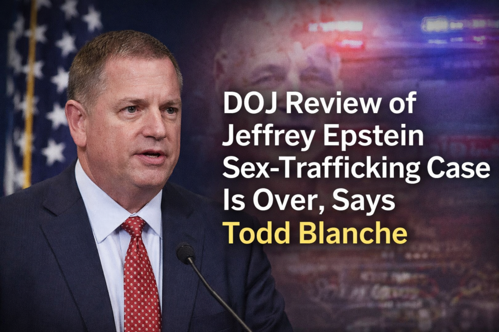 U.S. Deputy Attorney General Todd Blanche has confirmed that the Department of Justice has concluded its review of the Jeffrey Epstein sex-trafficking case, signaling an end to further internal examination by federal prosecutors.